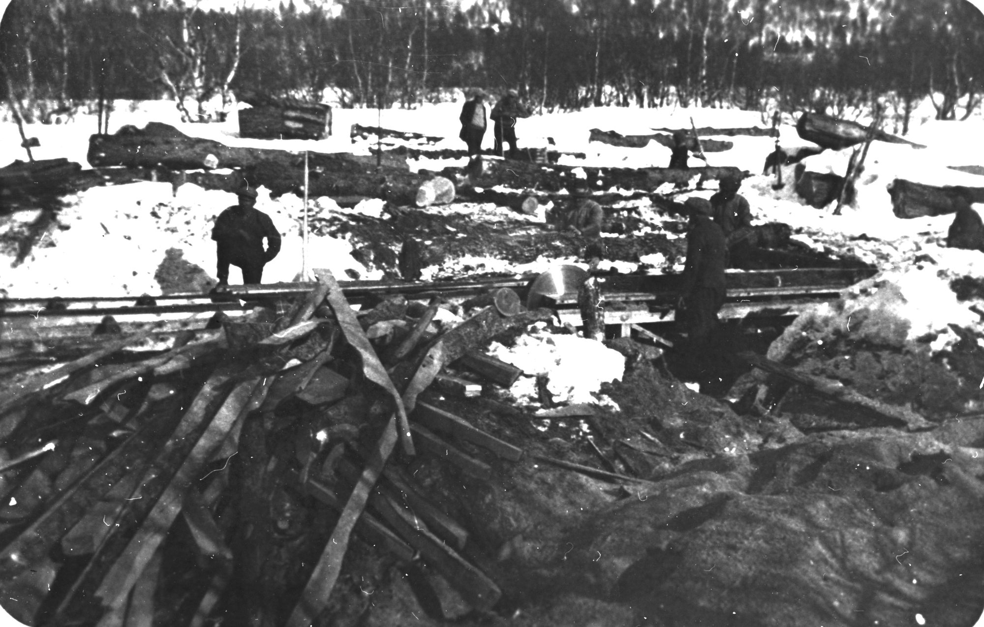 REF-0091 Nerskogen, Rennebu Skogbruk Frå Røasaga. Nerskogen. Blant personane på biletet er Hallvard Engelsjord.