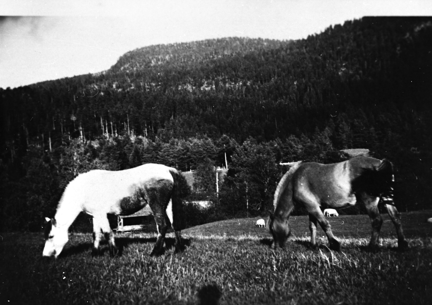 REF-0104 Furuly, Tverdal, Rennebu ca 1937 - hest Hestane på beite. I bakgrunnen Håkålia.