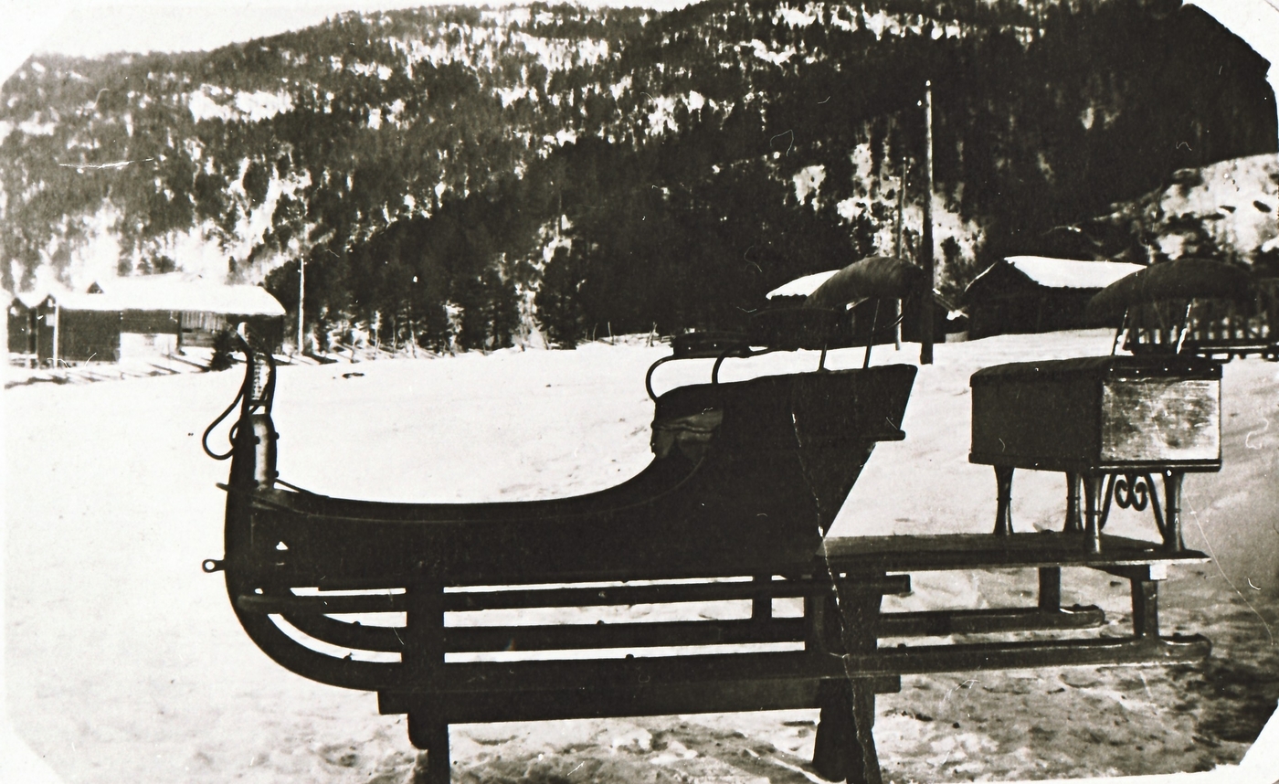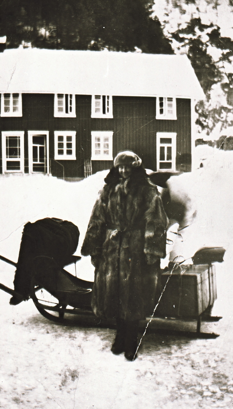 REF-0418. Meldal ca 1926. Anne Hårstad stig av sluffa ved sykeheimen i