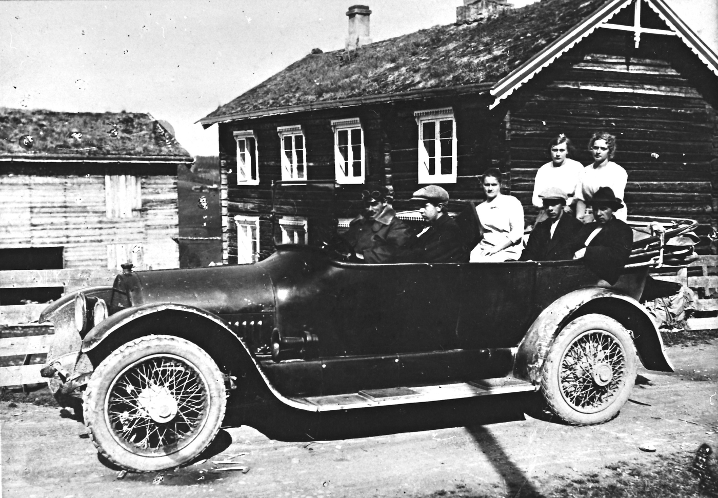 En Cadilac 8 syl, mod 1916 frarnfor husa borti Bergom (sørafor Berkåk).