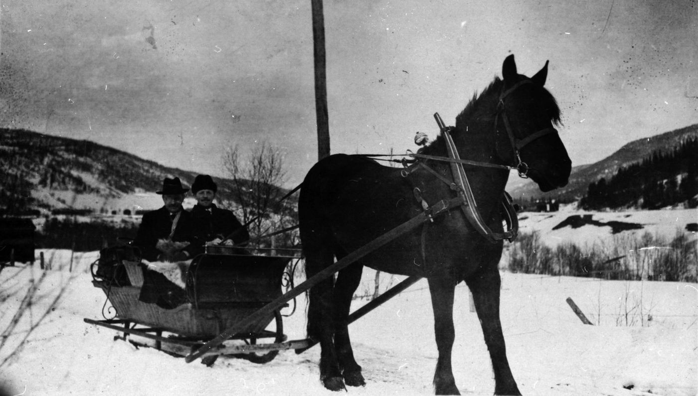 Mette Normann f . 0lsbakk, på tur til sin første lærarjobb i Kvikne. Hennes onkel John Holthe er skysskar.