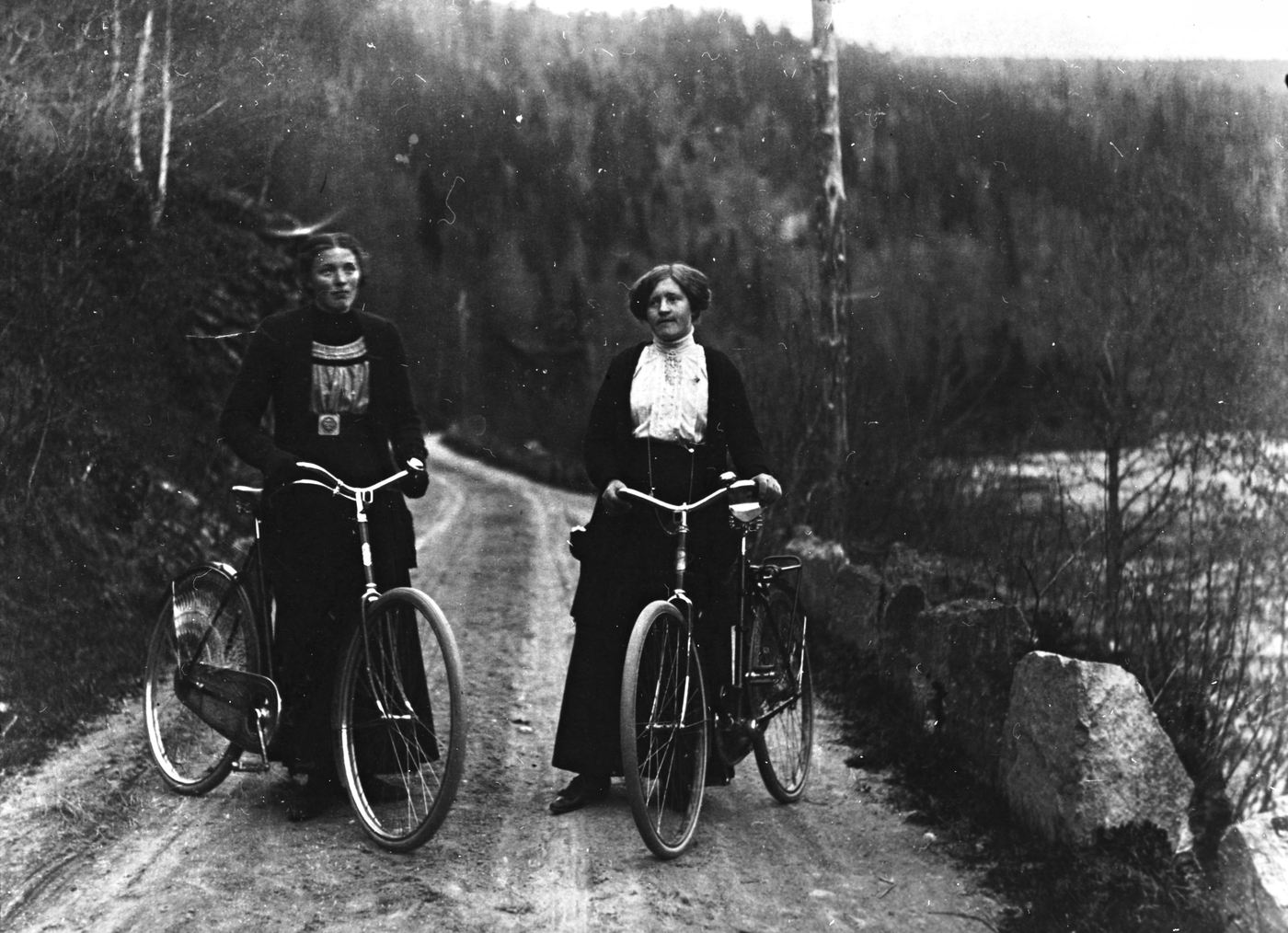 Mali Flå ? og Ellen Rundhagen med sykler, truleg ved Flåberga.