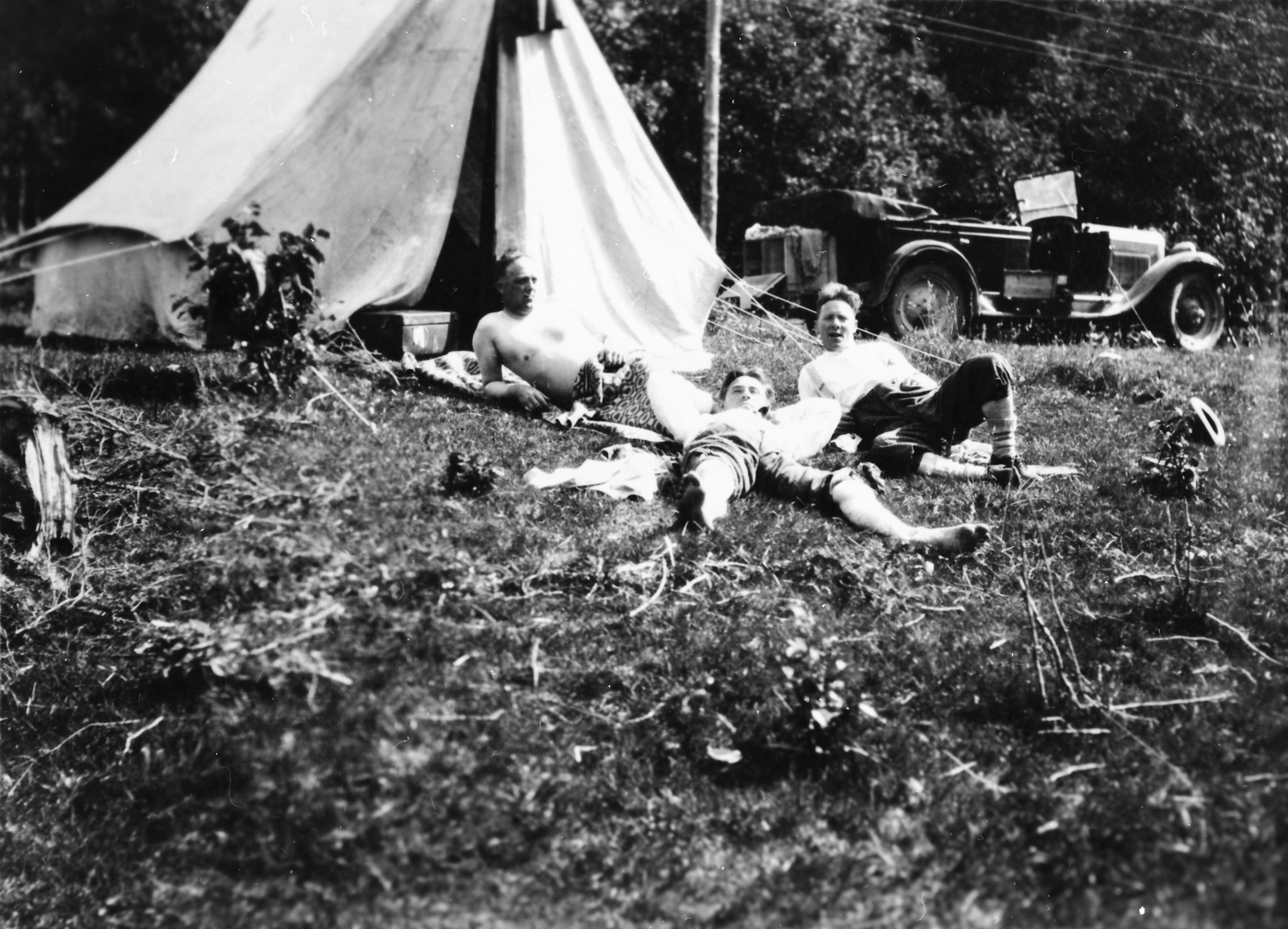 Campingtur med åpen bil og piktelt.