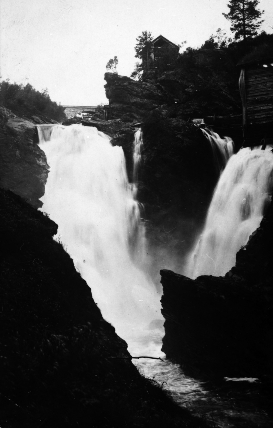 REF-0032 Granafossen i Grana (nedanfor riksvegen), med sagbruk (øverst i bildet) og kvern til høgre (vanskeleg synleg
