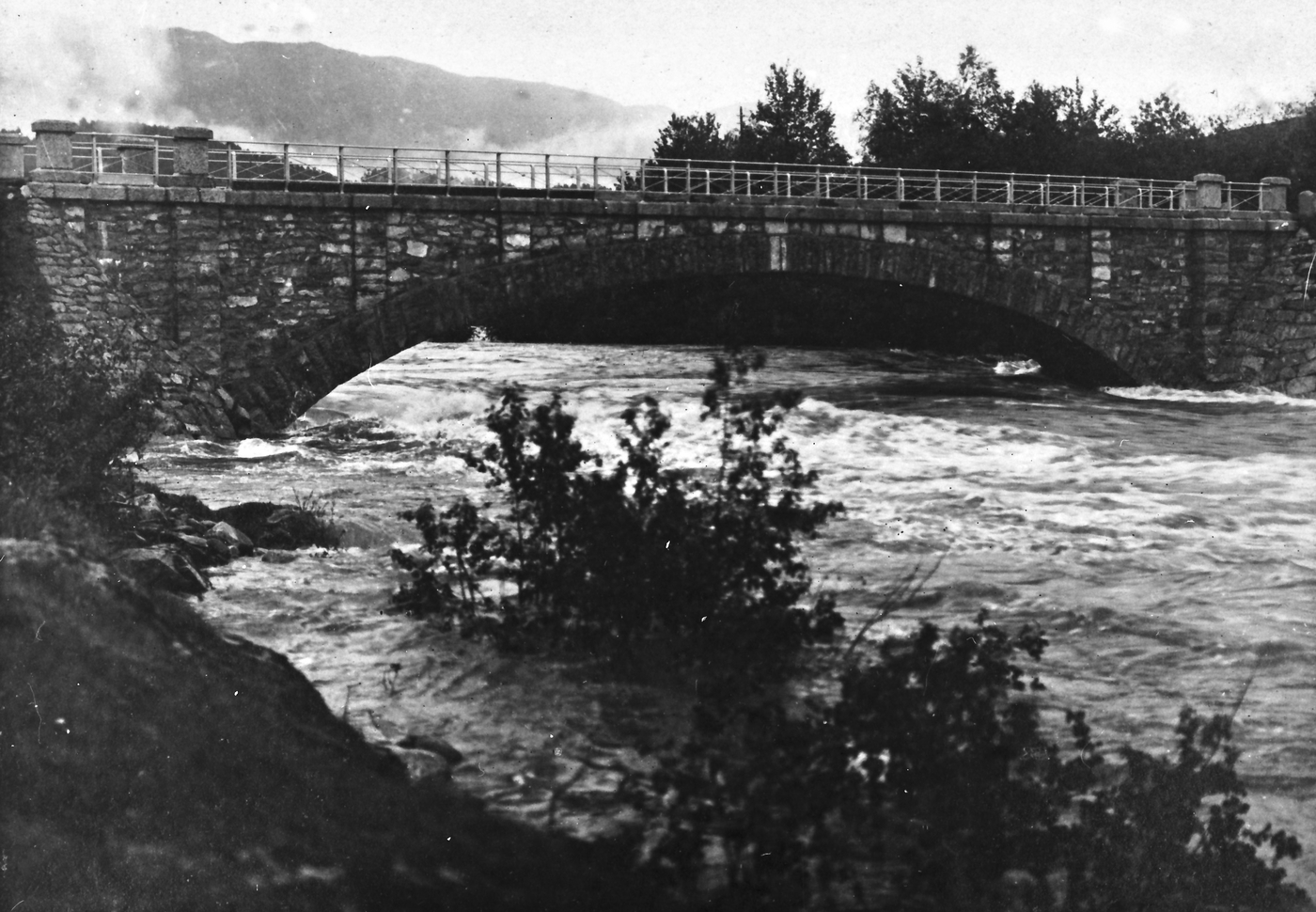 REF-0287 1918 Flom i Crkla med Mærk/Merk bru. Vatn ovafor der