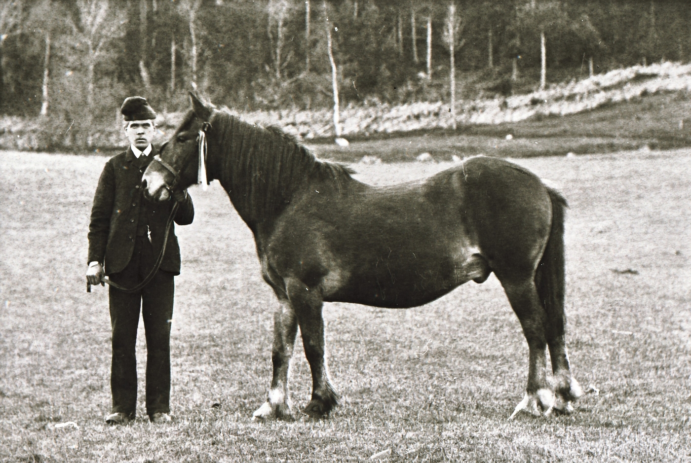 REF-0102 Furuly, Tverdal, Rennebu ca 1937-38 - hest Jon Nybro med 'Blakken' - i søndagspuss