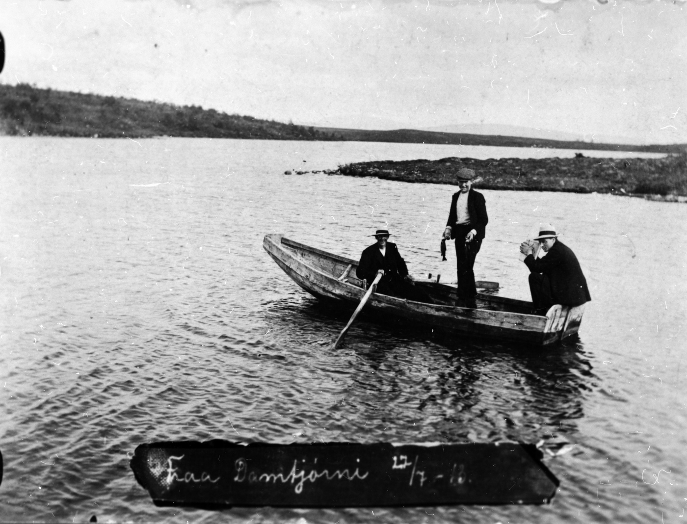 I båten f.v. Nils Nyhus, Ole Ødegård og Ludvig Eithun. 1913